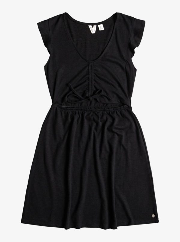 Summer nights just got hotter with the Flirty Vibes Knit Dress for women. Crafted from soft slub jersey fabric, the flowy dress features super short ruffled sleeves, a ruched front, and a cut-out detail at the waist.