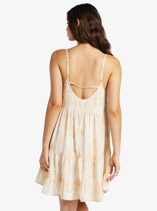 An easy breezy summer essential, this printed mini dress has a low back, adjustable straps, and a tiered ruffle skirt for movement.