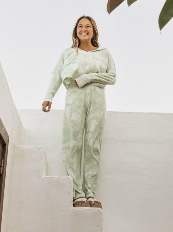 Made of ribbed knit-blend fabric, these printed lounge pants pair a high-rise waist and an easy, straight leg. Wherever you’re chilling, you’re never far from the palms.