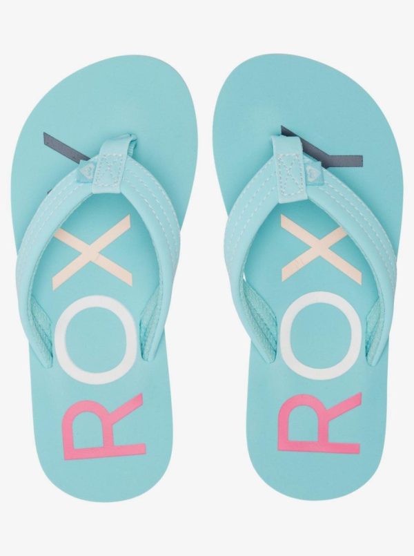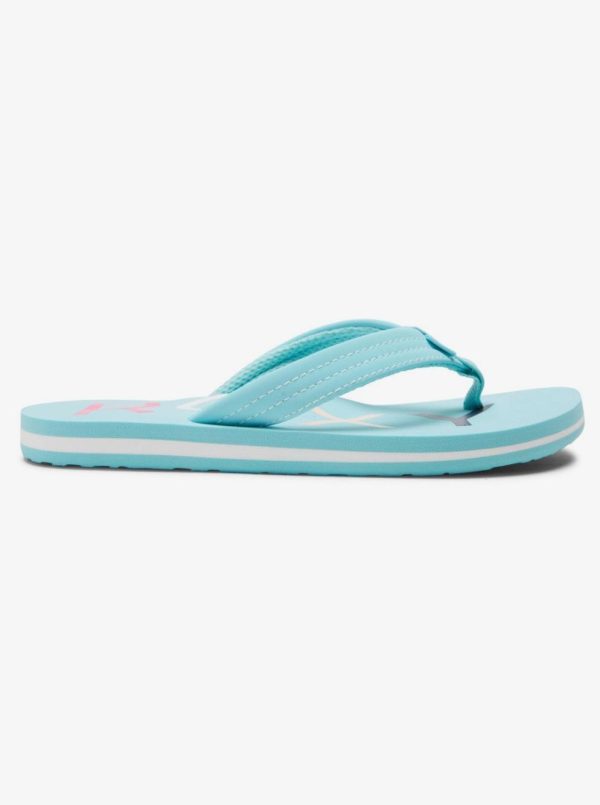 With water-friendly thong straps, the Vista flip-flops for girls are your go-tos for days at the beach or by the pool. Complete with a soft contoured footbed for comfort and a durable rubber outsole featuring a heritage ROXY print.