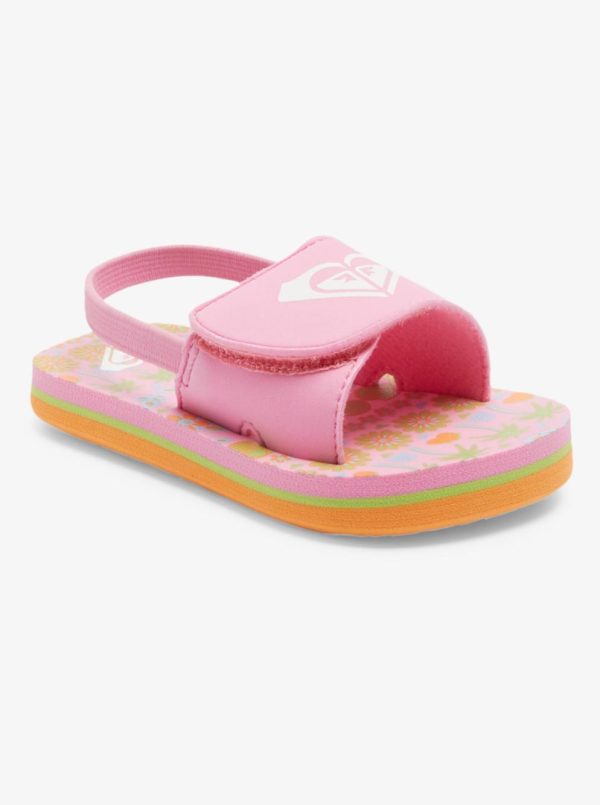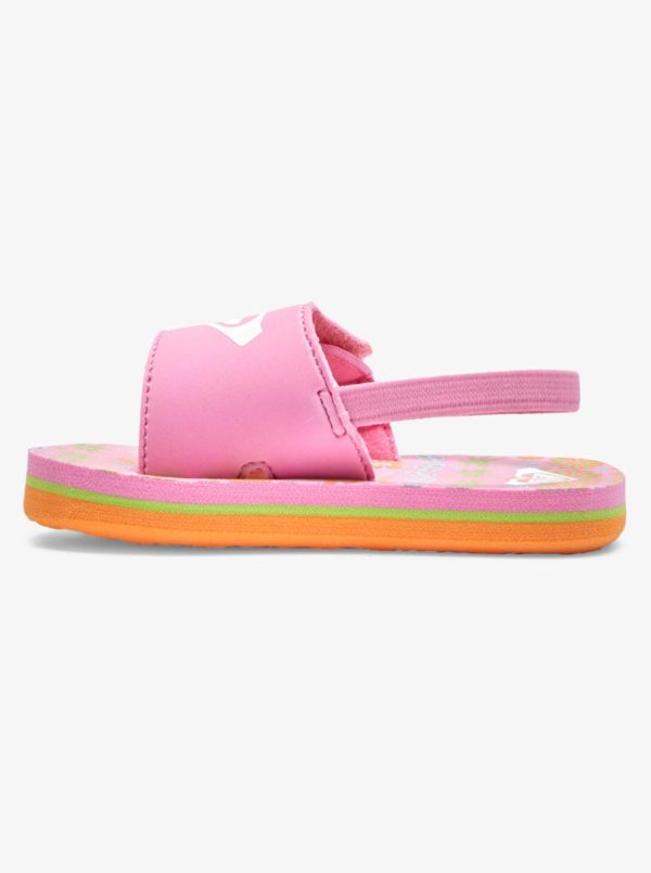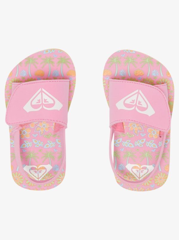 Keep your little one steady on their feet with the Finn slide sandals for toddlers, featuring a comfortable hook and loop closure and an elastic back strap for a secure fit. The colourful ROXY logo print on the top strap matches the sole for the perfect finish.