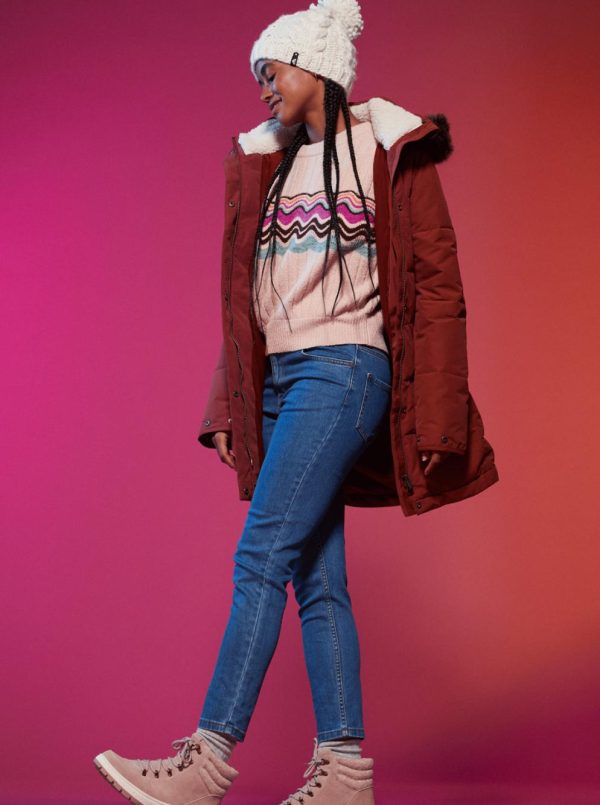 Lining: Engineered chambray lining on body with sherpa lining at collar & hood