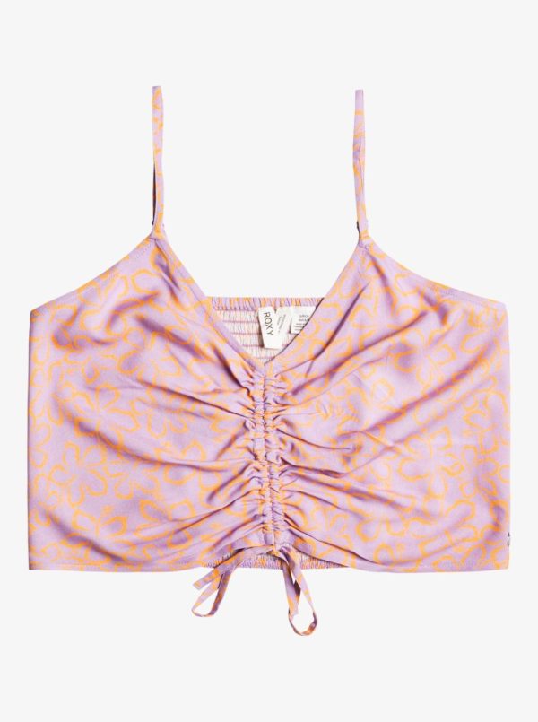 Made of lightweight printed fabric with a super-soft feel, this strappy cropped top has shirring at the center and a smocked back for a perfectly fitted shape.